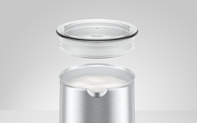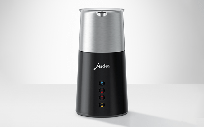 A special highlight is the chocolate milk, which can be prepared using pieces of fine chocolate thanks to the high-performance technology. The Milk Frother impresses with its elegant and functional design. With just four symbols, operation is simple and direct. The conical base provides a secure stand and holds the milk container, creating a stylish and harmonious unit. The slightly curved spout allows the frothed milk or chocolate milk to be poured precisely and cleanly. The Hot & Cold Milk Frother is the ideal addition to JURA's automatic Pure Coffee machines and will quickly become an indispensable accessory for coffee preparation.